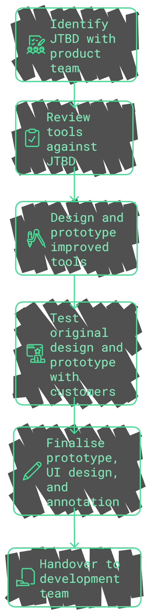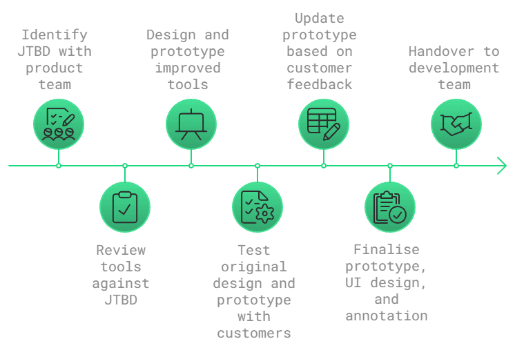 From a research and design perspective, each sprint followed the same high-level approach using the Jobs-to-be-done (JTBD) framework: